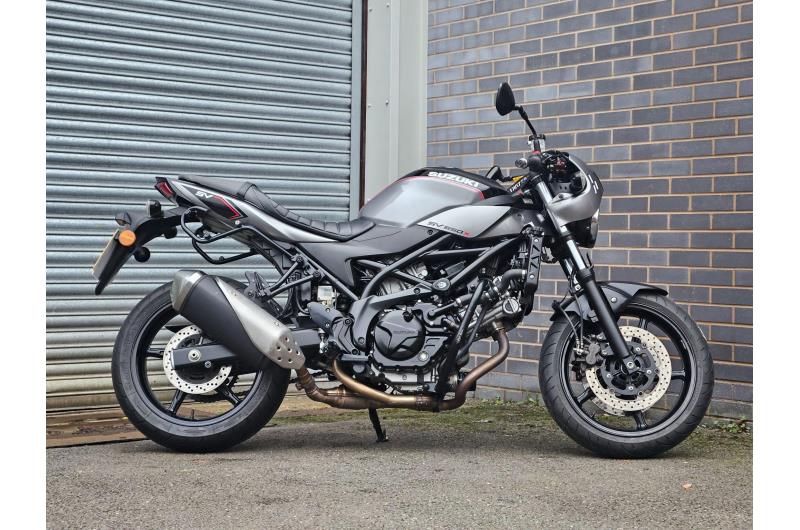 This Suzuki SV650X comes in great condition, with full service history, most recently being serviced with our technicians in January 2026. The bike comes with some great features, including: pannier racks; front cowling; retro ribbed seat; dropped handlebars; engine bars; crash protectors; adjustable levers; peppy 650cc engine producing 74 BHP....