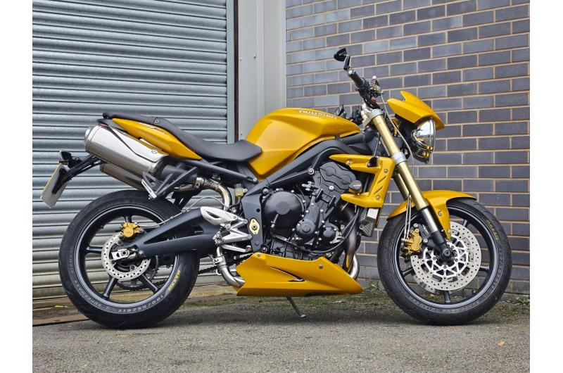 This Triumph Street Triple 675 comes in excellent condition, in the eye-catching gold colour scheme. The bike comes with service history, with a recent service being carried out by our technicians this year. The bike comes complete with some great features, including: 2 keys; crash bungs; bar end mirrors; belly pan; paddock stand bobbins and more....