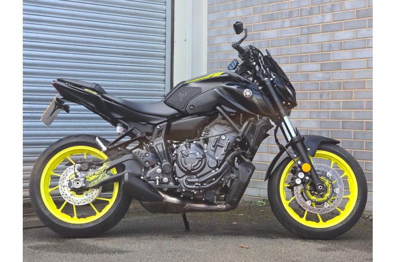 This Yamaha MT-07 comes in great condition, with low mileage and some awesome upgrades! The wheels have been painted professionally in the night fluo yellow, with matching graphics. The bike comes with bar end mirrors; tank pads; tail tidy; fly screen; crash bungs and more!...