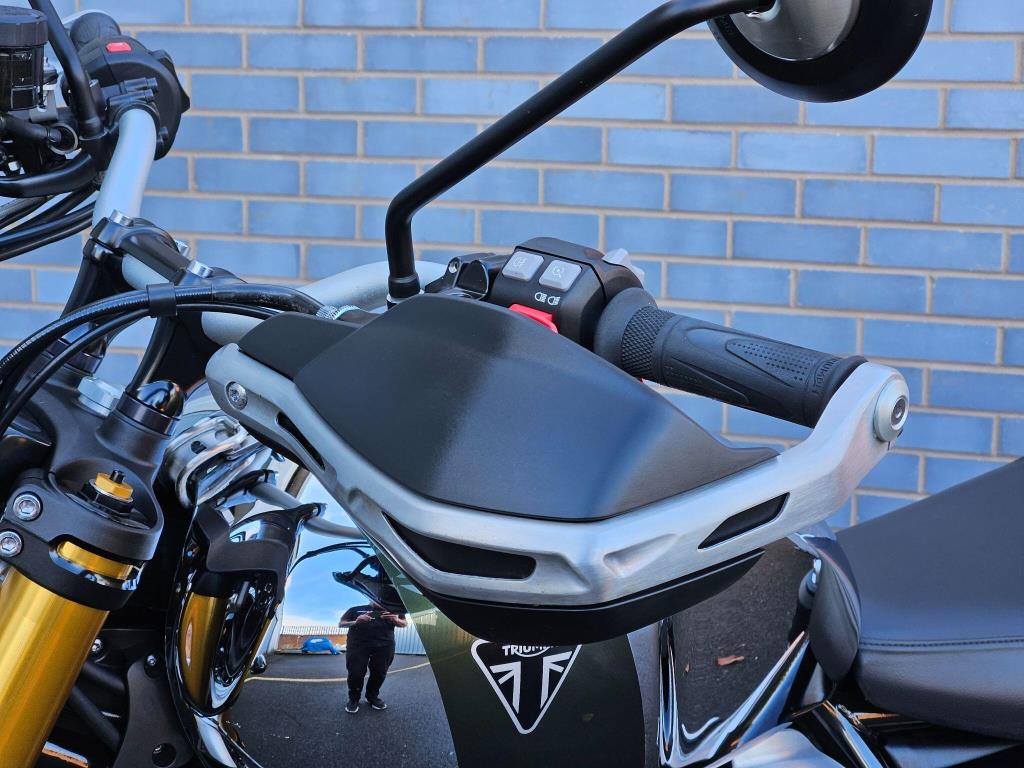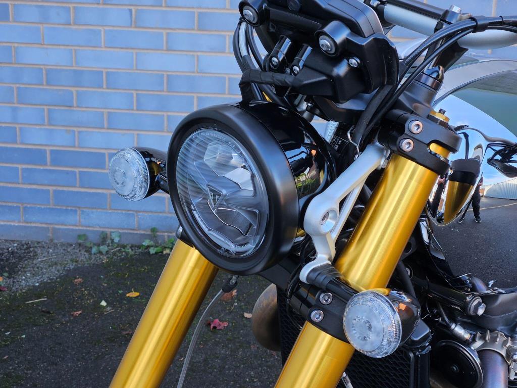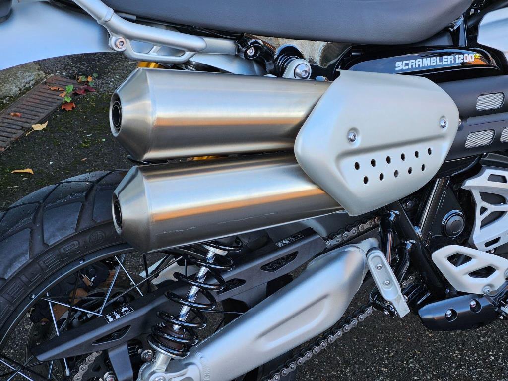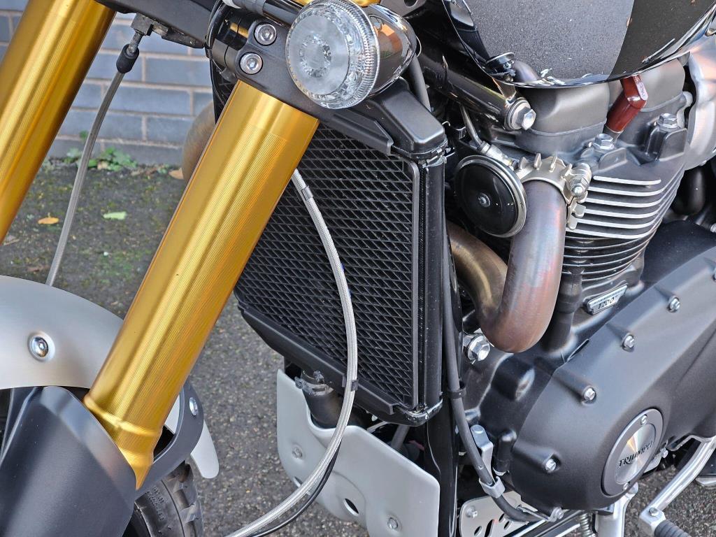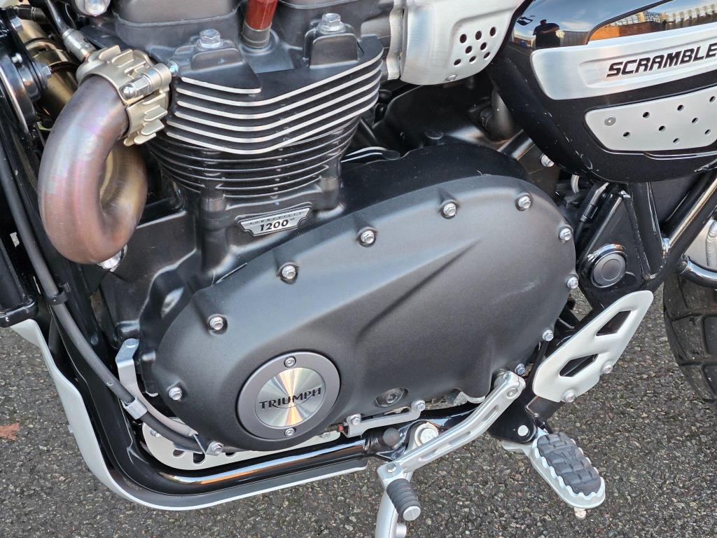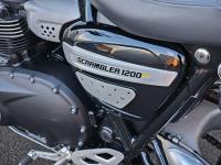 Keyless Ignition, Full Service History, Owner’s Manual & Service Records.Experience true modern classic performance with this 2023 Triumph Scrambler 1200 XE Chrome Edition, presented in outstanding condition with low mileage. This limited-run Chrome Edition stands out with its stunning mirror-finish chrome tank and premium detailing, offering exclusivity and head-turning style. Powered by Triumph’s high-power 1200 cc parallel-twin engine producing 89 bhp and 110 Nm of torque, the Scrambler 1200 XE delivers effortless performance both on and off the road. Featuring fully-adjustable Showa long-travel front forks, Öhlins twin rear shocks, Brembo M50 radial brakes, and a 21-inch front wheel, it combines class-leading capability with refined comfort. The XE specification includes multiple riding modes, switchable ABS and traction control, keyless ignition, cruise control, and My Triumph connectivity for seamless tech integration. Presented in excellent order throughout, this example has been carefully maintained and garage-kept, reflecting the pride of previous ownership. A rare opportunity to own the flagship Scrambler model in its most distinctive and collectible guise – the Chrome Edition