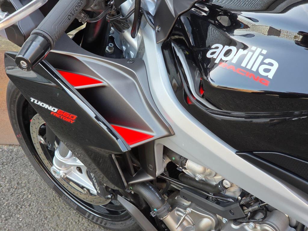 This Aprilia Tuono 660 Factory comes in great condition, with low mileage and some great features and extras, including: parallel-twin engine producing 105 hp, a step up from the 95 hp found on the standard model; 16-tooth front sprocket (down from 17 on the standard model) to provide more aggressive low-to-mid-range acceleration; lithium-ion battery; Ohlins front & rear suspension; Brembo brakes; cornering ABS; QS; rider modes; cornering LED lights; radiator guard; Oxford heated grips and more!